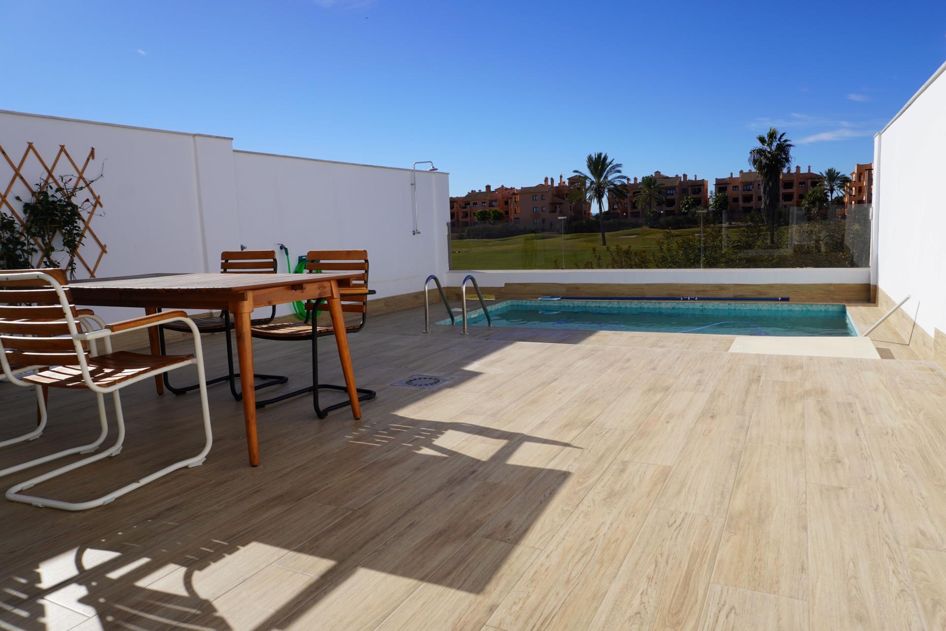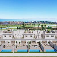 Deze geschakelde Villa’s met garage worden first line gebouwd op het golfresort “La Serena Golf” in Los Alcazares op 1,5 km afstand van Mar Menor, een binnenzee welke is gescheiden door een landtong van de Middellandse zee. Een plek die zeer populair is voor verschillende watersporten zoals surfen, kajakken, zeilen en zwemmen. Het water is er altijd warmer dan de Middellandse zee en op het diepste punt slechts 7 meter. Het gezellige dorpje Los Alcazares is op loopafstand en heeft een mooi aangelegde wandelboulevard, een haventje en leuke eettentjes. Wandelaars en vogelspotters kunnen genieten in het vlakbij gelegen natuurpark “Salinas de San Pedro del Pinitar”. Voor een stedentrip kunt u het levendige Murcia en Cartegena bezoeken.