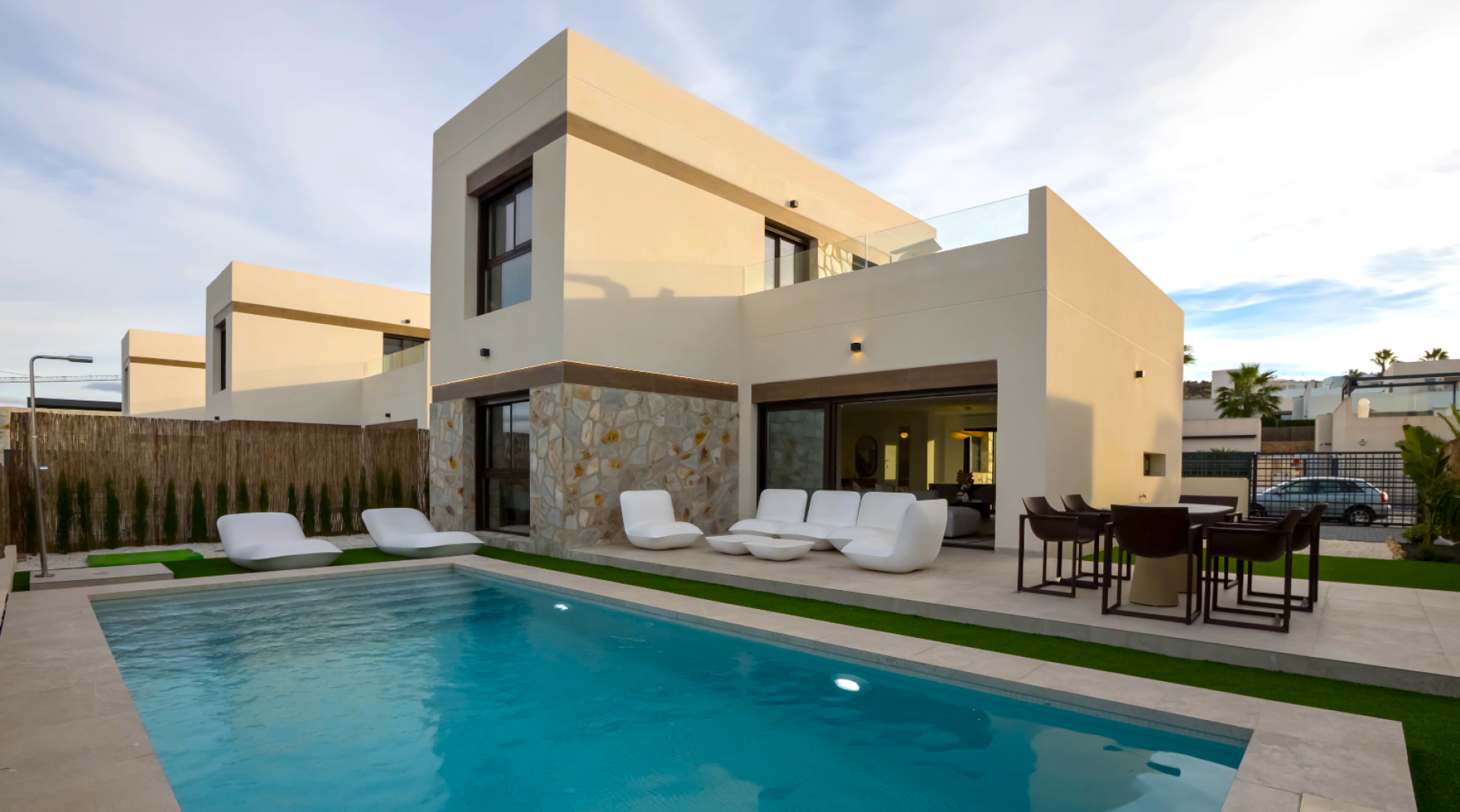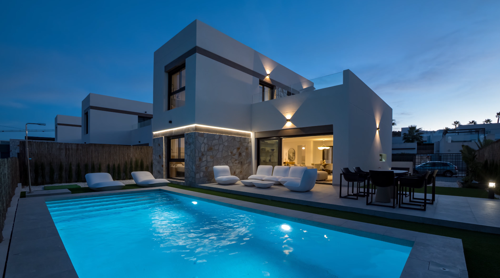 Key Ready – direct genieten ! Deze elegante villa’s, verrijkt met prachtige natuursteenaccenten, strekken zich uit over twee woonlagen bieden een lichte woonkamer met open keuken en een riante tuin rondom. De privé-oprit en het verfrissende zwembad maken het buitenleven hier compleet. Gelegen op het geliefde La Finca Golf Resort, bevinden zowel de heuvelachtige golfbaan als het hoger gelegen clubhuis zich op slechts ca. 600 meter afstand.