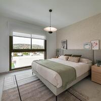 De villa’s beschikken over drie slaapkamers: twee comfortabele slaapkamers met een gedeelde badkamer op de begane grond, en een luxe master bedroom met en-suite badkamer op de eerste verdieping. Vanuit deze master suite heeft u direct toegang tot een prachtig solarium van 30 m² – de ideale plek om te ontspannen en te genieten van het uitzicht. De fraai aangelegde tuin is volledig voorzien van beplanting en een automatisch irrigatiesysteem, zodat u zonder zorgen van uw nieuwe woning kunt genieten.