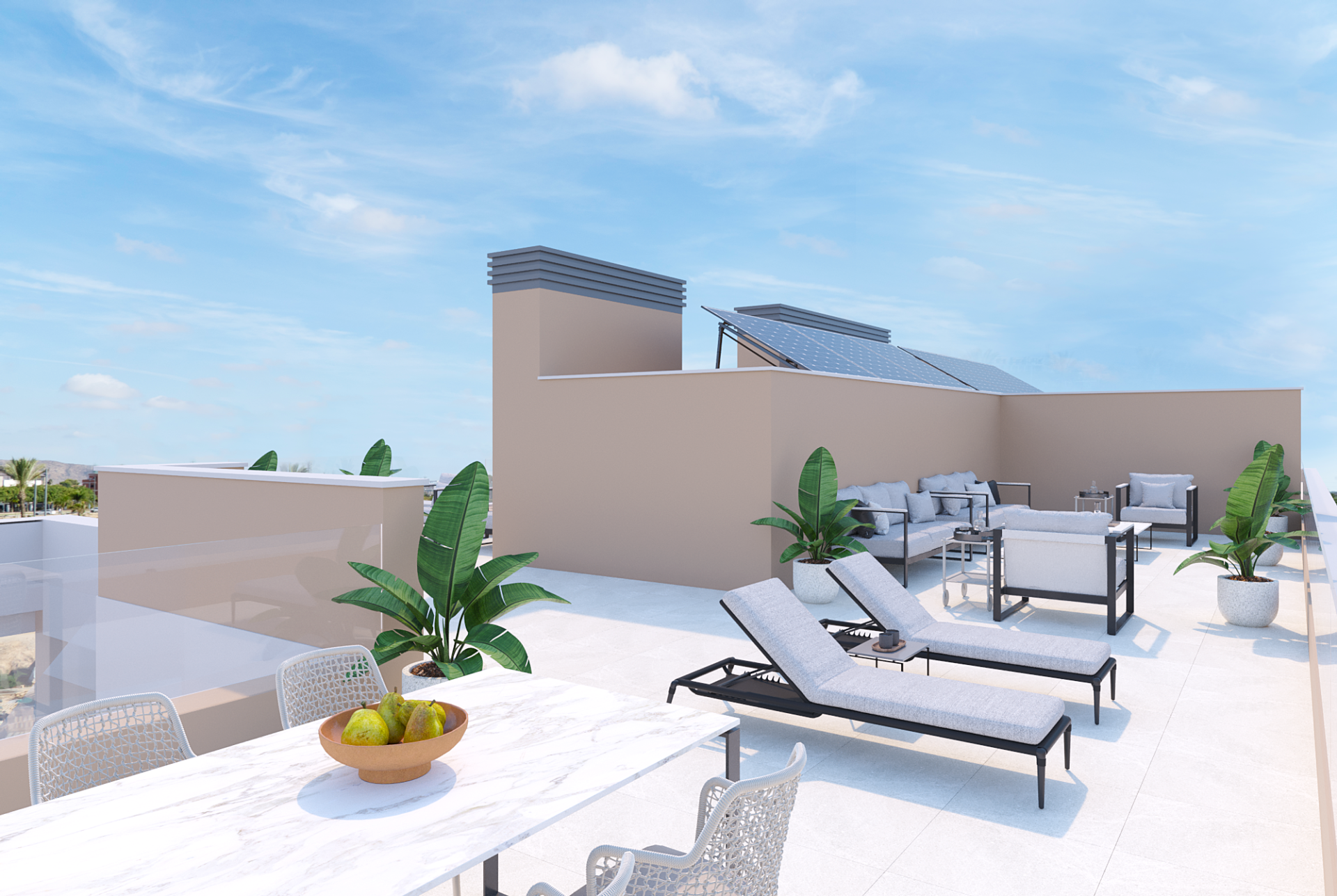 Deze Penthouses en verdieping appartementen met 2 of 3 slaapkamers worden gebouwd op het indrukwekkende Santa Rosalia lake and life resort nabij Los Alcázares vlakbij Mar Menor, gelegen in de provincie Murcia. Een echte eyecatcher van het resort is de enorme lagune, het grootste kunstmatige zwembad van Europa welke gereinigd wordt volgens de laatste duurzame filter technologie waardoor minder chemicaliën, energie en water verbruikt wordt. De lagune heeft 2 eilanden, diverse stranden, een Beach club en wandelpaden. Het resort is verder voorzien van een zeer grote variatie aan bomen en planten wat op een natuurlijke wijze is aangelegd. Op het resort zelf zijn diverse sportfaciliteiten zoals kajakken, zeilen, golf, tennis, padel en voor de kinderen is er een kinderspeelplaats. Wandelaars en vogelspotters kunnen genieten in het vlakbij gelegen natuurpark “Salinas de San Pedro del Pinitar”. Golf liefhebbers kunnen terecht bij Calera Mar Menor Golf & Spa Resort op slechts 1 km afstand. Voor een stedentrip kunt u het levendige Murcia en Cartegena bezoeken.