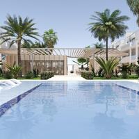 Deze mooie begane grond appartementen zijn voorzien van 2 of 3 slaapkamers en 2 badkamers waarvan 1 badkamer en suite met een dubbele wastafel. De living heeft een moderne open keuken waarbij de keukenapparatuur inclusief is. De woningen worden opgeleverd inclusief een privé parkeerplaats en een berging in de ondergrondse garage. De aangelegde tuin / terras is 42 m2 bij de 2 slaapkamer woningen en 48 m2 bij de 3 slaapkamer woningen. De gemeenschappelijke ruimte heeft een mooie binnentuin, een fitnessruimte en twee zwembaden.