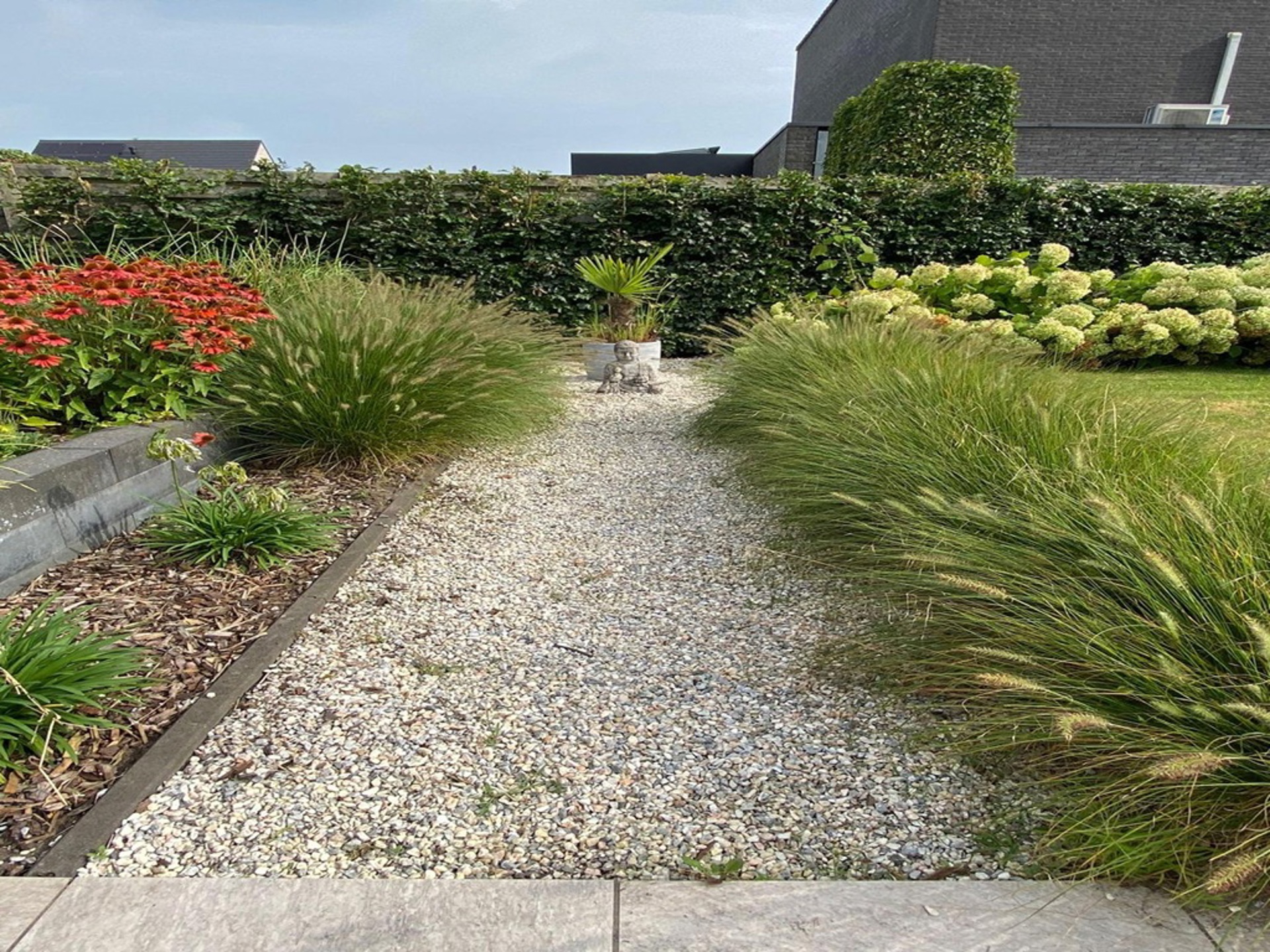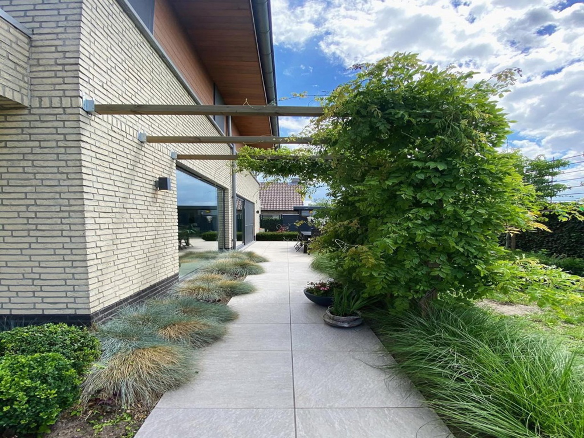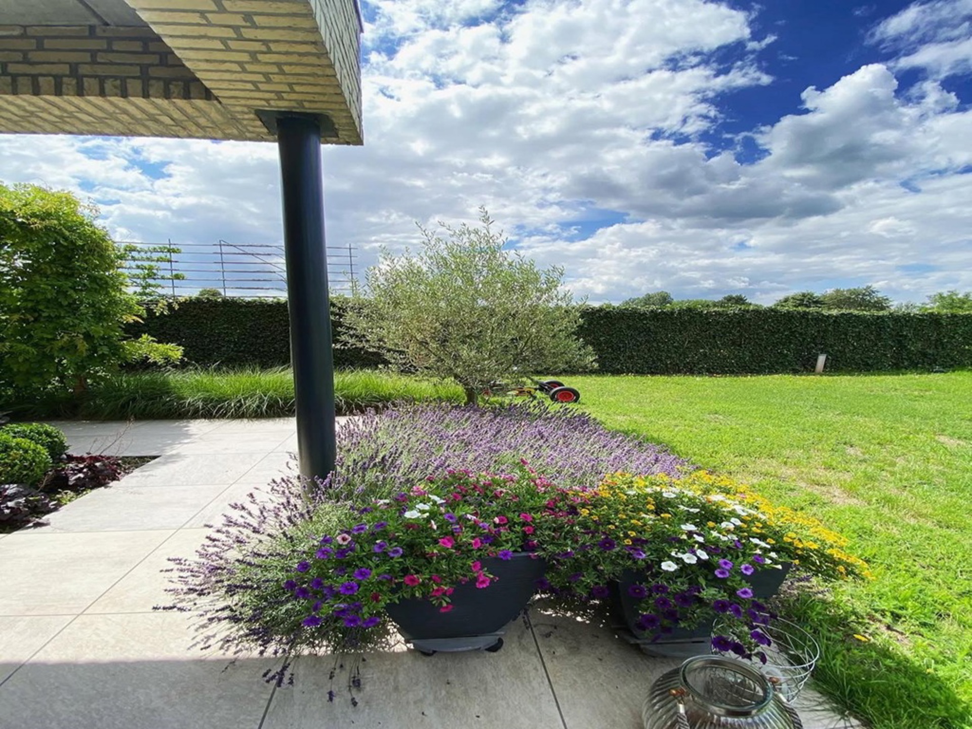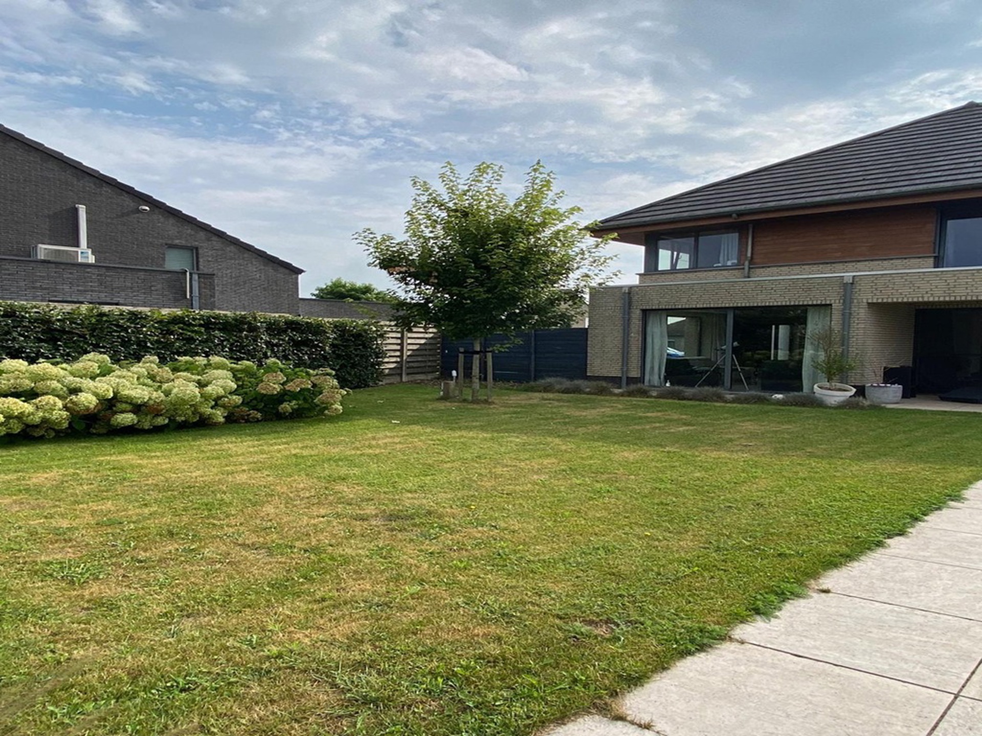 Tot slot hebben we nog de tuin waar we zowaar de ganse dag wel ergens een plekje in het zonnetje terug kunnen vinden. Achter de woning, grenzend aan de keuken, is een apart terras voorzien dat pal op het Zuiden ligt. Hier ook nog een ruime tuinberging. Ook is het gezellig vertoeven in de voorziene poolhouse! Voor de auto is er een carport voorzien en daarnaast nog ruim voldoende staanplaatsen.