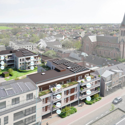 Ontdek Afra, een luxueus nieuwbouwproject in de Kerkstraat te Merksplas. Dit project biedt 22 moderne appartementen en 2 commerciële ruimtes, met een stijlvolle en eigentijdse uitstraling. Afra combineert strakke lijnen met hoogwaardige materialen, waardoor het een opvallend architecturaal geheel vormt. De appartementen zijn ontworpen met oog voor detail en bieden een ideaal wooncomfort. Hier wonen betekent genieten van een centrale ligging onder de kerktoren van Merksplas, met alle faciliteiten op wandelafstand.