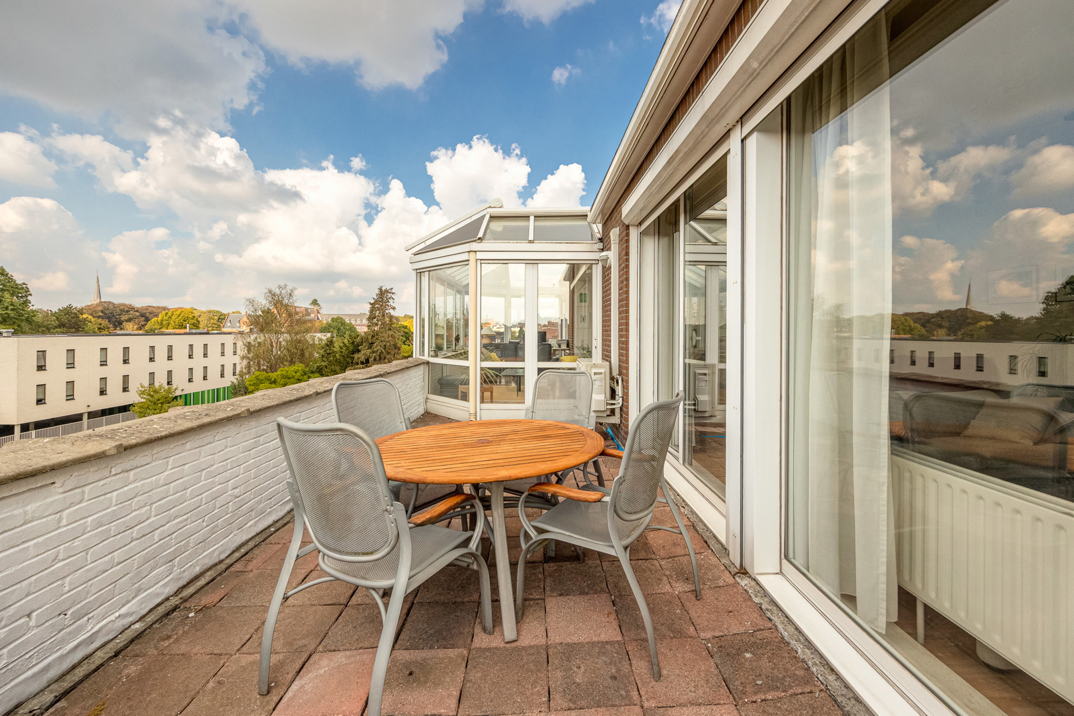 Het eerste terras kan u betreden via het schuifraam in de leefruimte, het tweede terras is toegankelijk via het schuifraam in de eerste slaapkamer. Op beide terrassen geniet je dankzij de hoogte van het appartement van een wijds zicht over Turnhout!