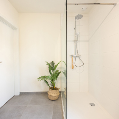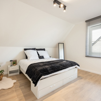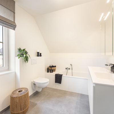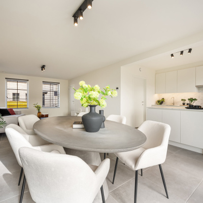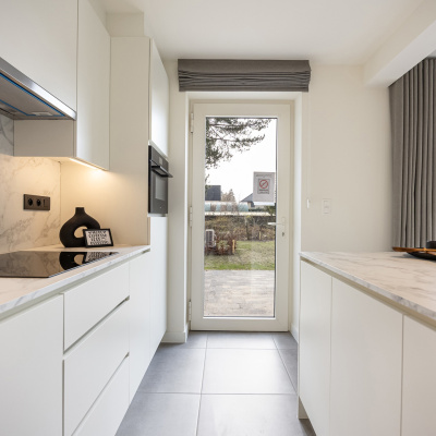 Elke woning beschikt over drie volwaardige slaapkamers en een badkamer met ligbad, aparte douche, dubbel lavabomeubel en toilet. De open leefruimte met zithoek, eetruimte en volledig ingerichte keuken vormt het hart van de woning en sluit naadloos aan op de aangelegde tuin. Grote raampartijen zorgen voor een overvloed aan natuurlijk licht en creëren een aangename woonbeleving.