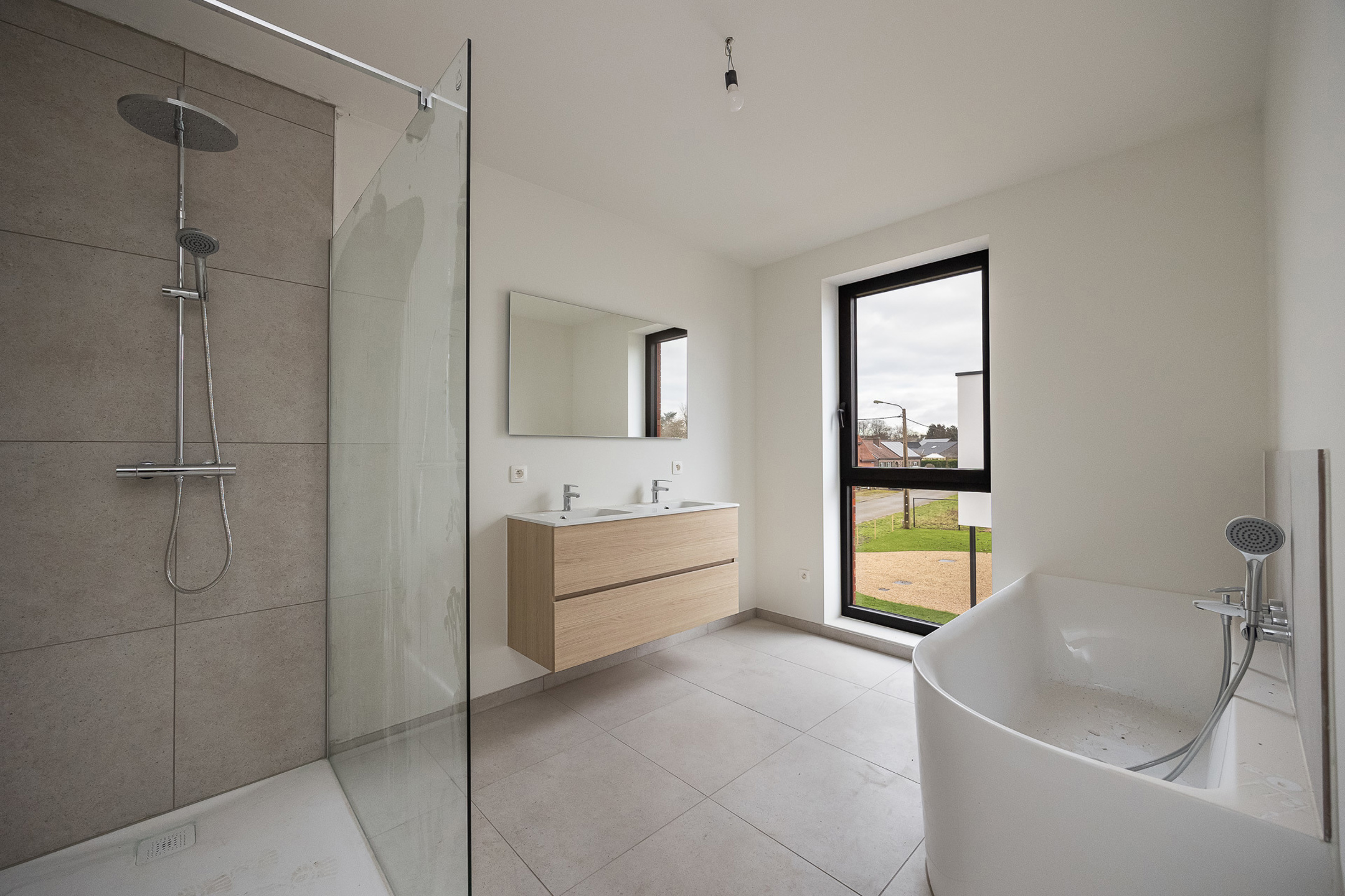 Met een strakke, eigentijdse architectuur en hoogwaardige afwerking combineren deze woningen comfort en energie-efficiëntie (E-peil max. 20). De ruime halfopen nieuwbouwwoningen, met een bewoonbare oppervlakte tussen 154 m² en 189 m² en percelen van 420 m² tot 625 m², bieden u volop ruimte om te genieten. Grote raampartijen zorgen voor een overvloed aan natuurlijk licht en de open leefruimtes creëren een aangename, luchtige sfeer.