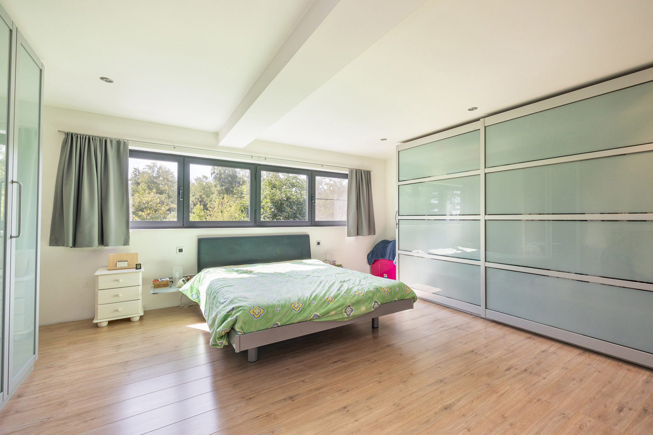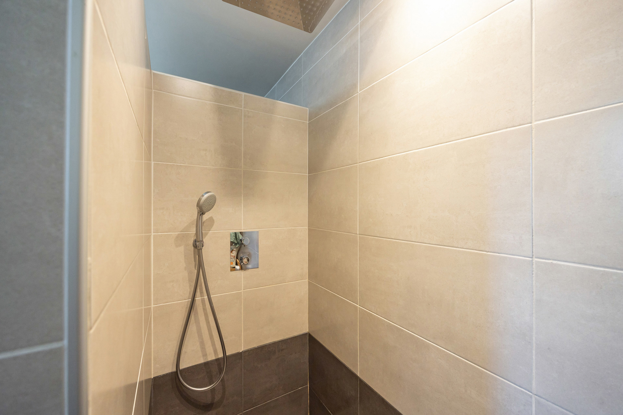 Op de 1ste verdieping zijn twee slaapkamers van respectievelijk 25 en 13 m². De erg ruime badkamer met inloopdouche, bad, dubbel lavabomeubel en toilet is zowel toegankelijk vanuit de grote slaapkamer als de nachthal. Ook een handige wasberging vindt u terug op de 1ste verdieping.