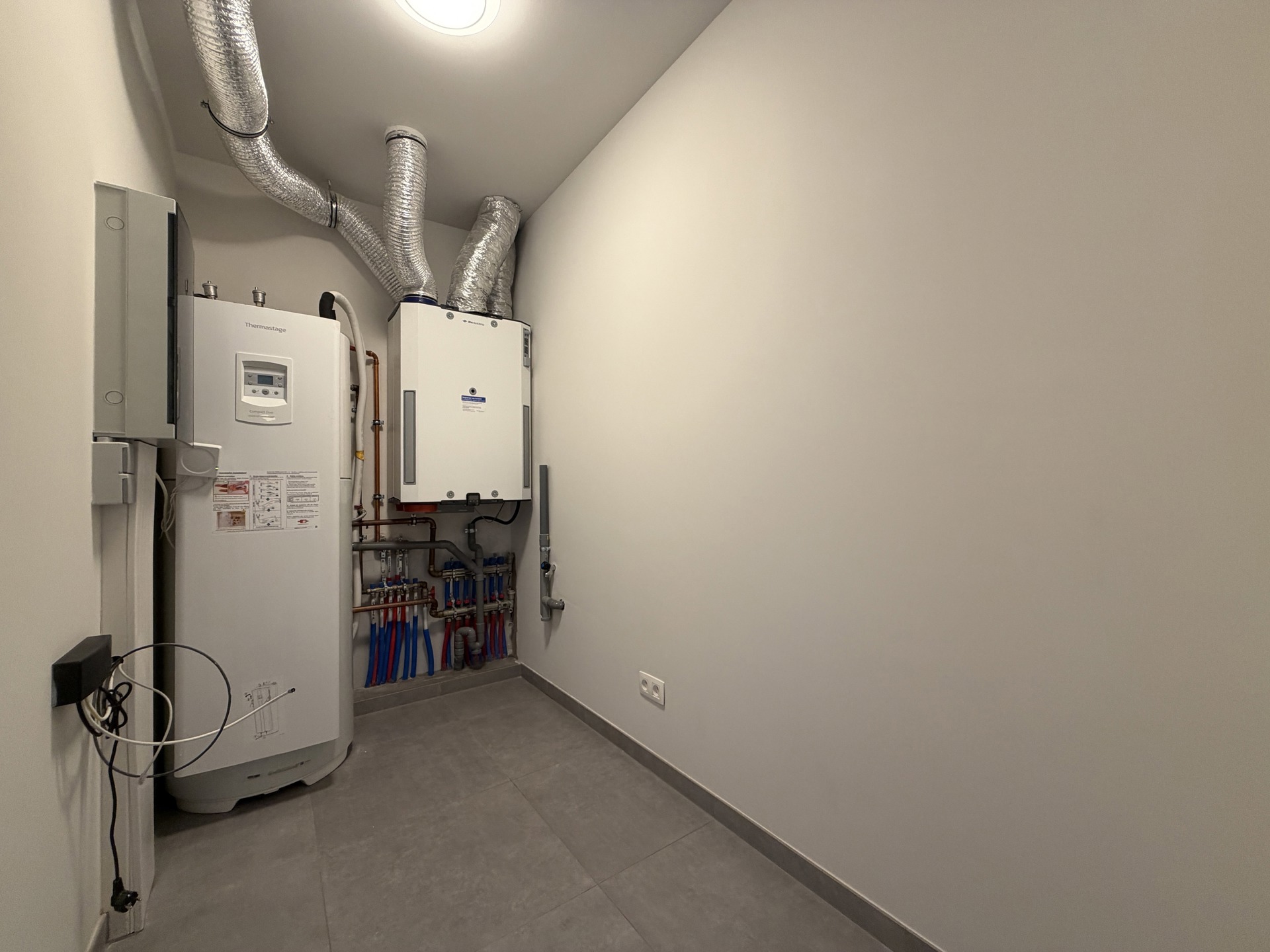 Beschrijving: dit recent hoogwaardig afgewerkt appartement, gelegen in het rustige en groene Noorderwijk, bevindt zich op de eerste verdieping van een verzorgd appartementsgebouw. Via de inkomhal heeft u toegang tot de twee slaapkamers, het gastentoilet, de badkamer en de ruime leefruimte met open keuken. De badkamer is stijlvol ingericht met een inloopdouche, moderne wastafel met spiegelkast en handdoekkast. De volledig uitgeruste keuken beschikt over kwalitatieve toestellen, waaronder een koelkast, vaatwasser, oven, elektrische kookplaat en dampkap. Aansluitend bevindt zich een praktische berging met aansluitingen voor wasmachine en droogkast. De leefruimte geniet van veel natuurlijk licht en biedt toegang tot het ruime, deels overdekte westgericht terras, waar u in alle rust kan genieten van de avondzon. Dit appartement werd gebouwd met aandacht voor comfort en energiezuinigheid: het is uitgerust met een ventilatiesysteem type D met warmterecuperatie, zonnepanelen en een warmtepomp gekoppeld aan vloerverwarming die in de zomer ook kan dienen voor vloerkoeling. Verder beschikt het appartement over een ruime kelderberging, een carport, en toegang tot een gemeenschappelijke fietsenberging met plaats voor afvalcontainers.