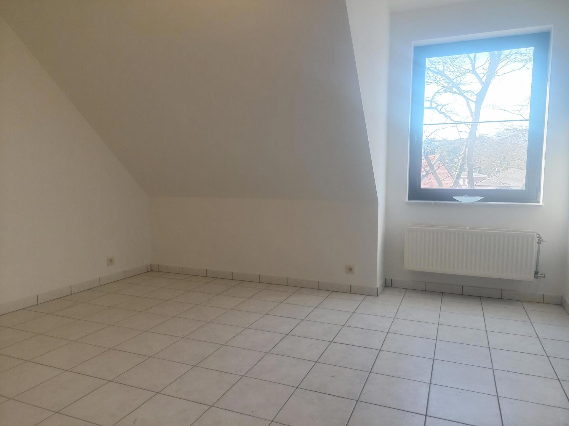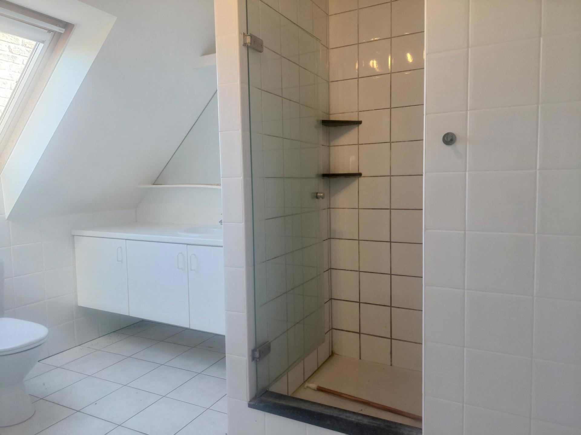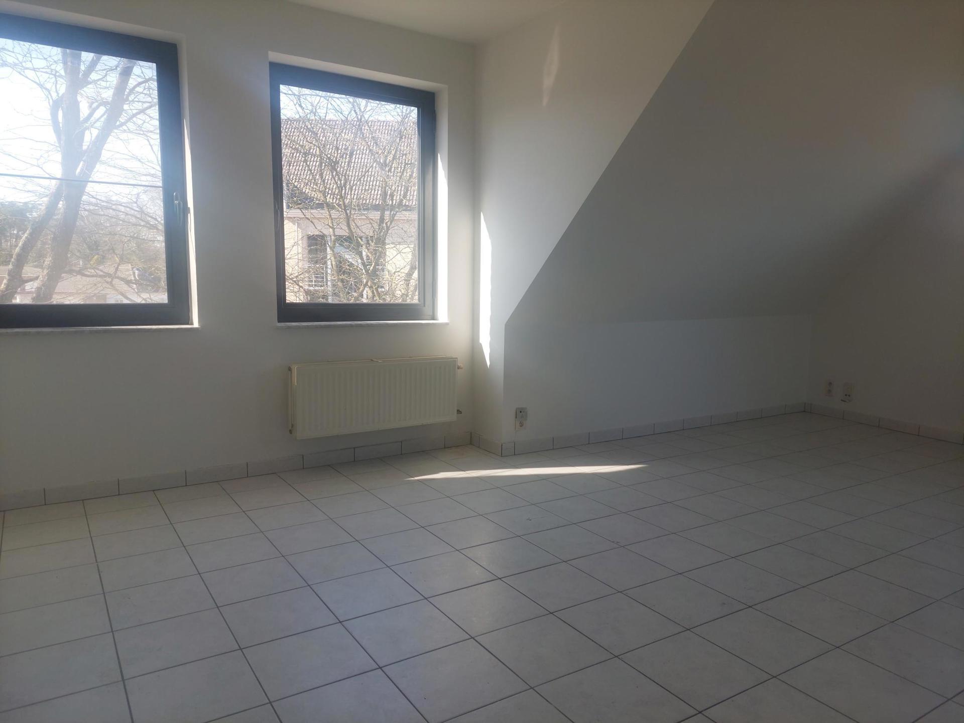 Dakappartement op de 2de verdieping (lift aanwezig) met 1 slaapkamer, terras, autostaanplaats en gemeenschappelijke fietsenberging. Beschikbaar: onmiddellijk. Gemeenschappelijke kosten: € 65,00 (forfait). EPC: 159 kWh/m² (label B).