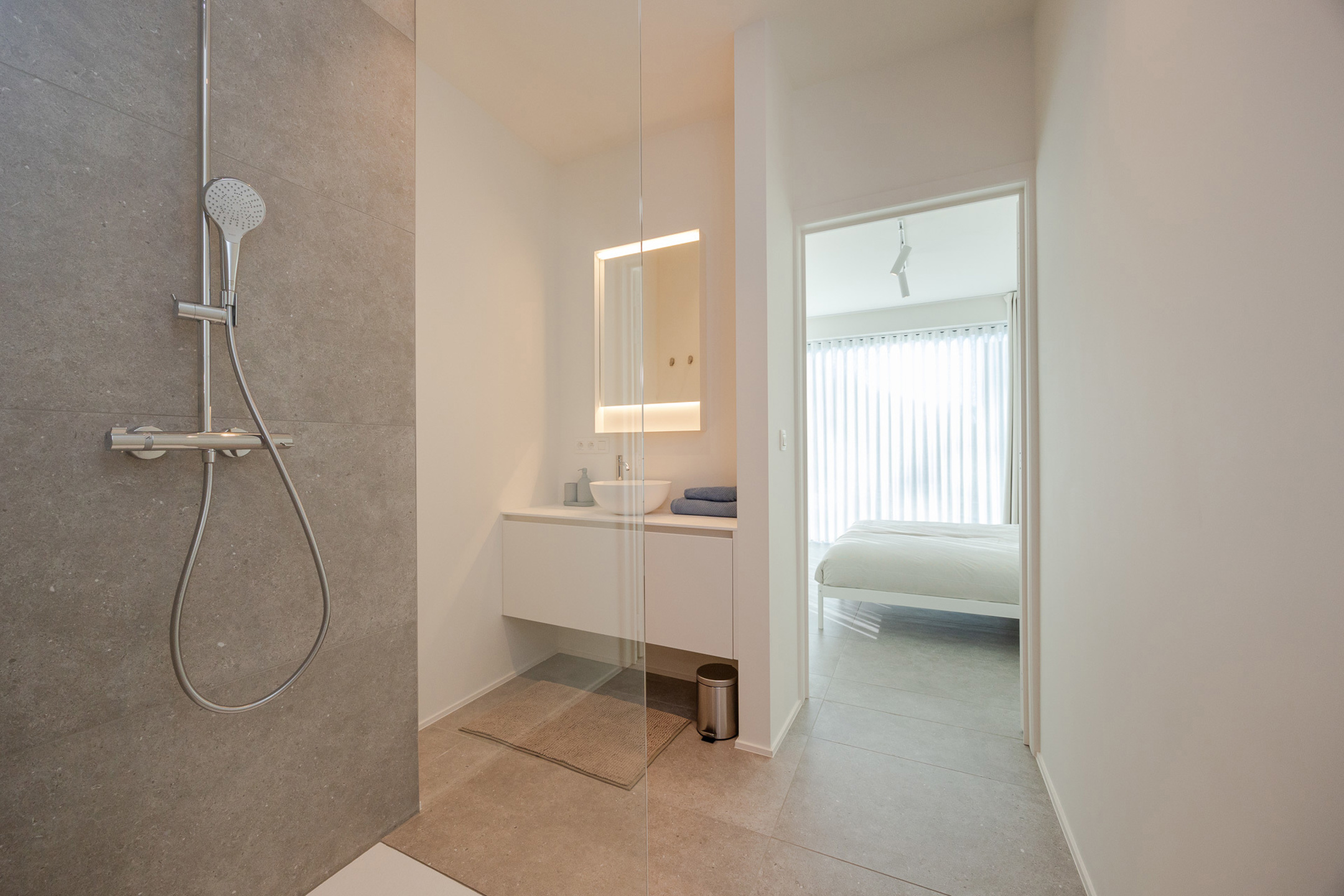 Indeling: inkomhal met vestiairekast, berging met wasmachine/droogkast, gastentoilet met handenwasser, volledig ingerichte keuken met toegang tot voorterras, (keuken)berging, slaapkamer met ingemaakte kleerkast en aansluitende inloopdouchekamer, grote living met aansluitend achterterras, dressing, ouderslaapkamer met toegang tot achterterras, badkamer met ligbad en inloopdouche, autostaanplaats en fietsenstalling, gemeenschappelijke tuin met pétanquebaan.