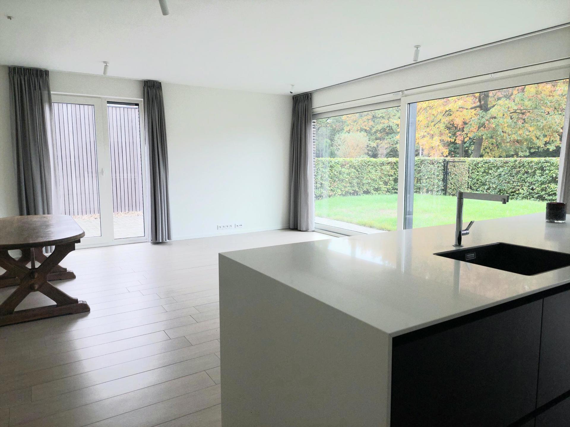 Indeling: inkomhal, toilet, twee slaapkamers, berging, woonkamer, open keuken, tuin, terras, ondergrondse autostaanplaats, kelderberging, gemeenschappelijke fietsenberging.
