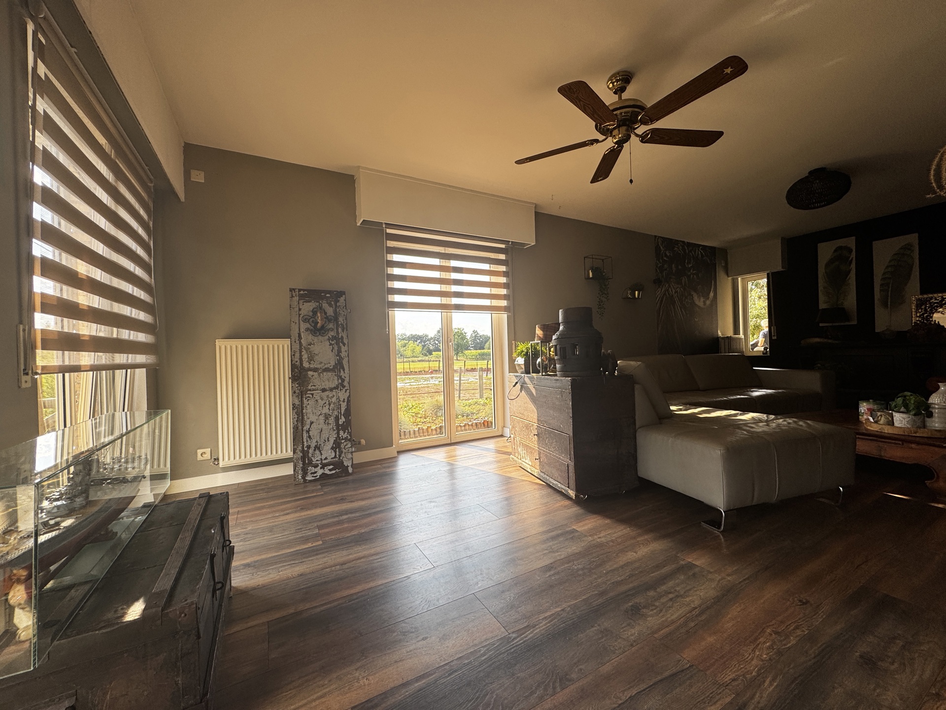 Vrijstaande energiezuinige laagbouwwoning met 3 slaapkamers, 2 garages en een naast- en achterliggend weiland. De totale grondoppervlakte bedraagt maar liefst 3583m². Beschikbaar vanaf 01/11/2025. EPC: 208 kWh/m².