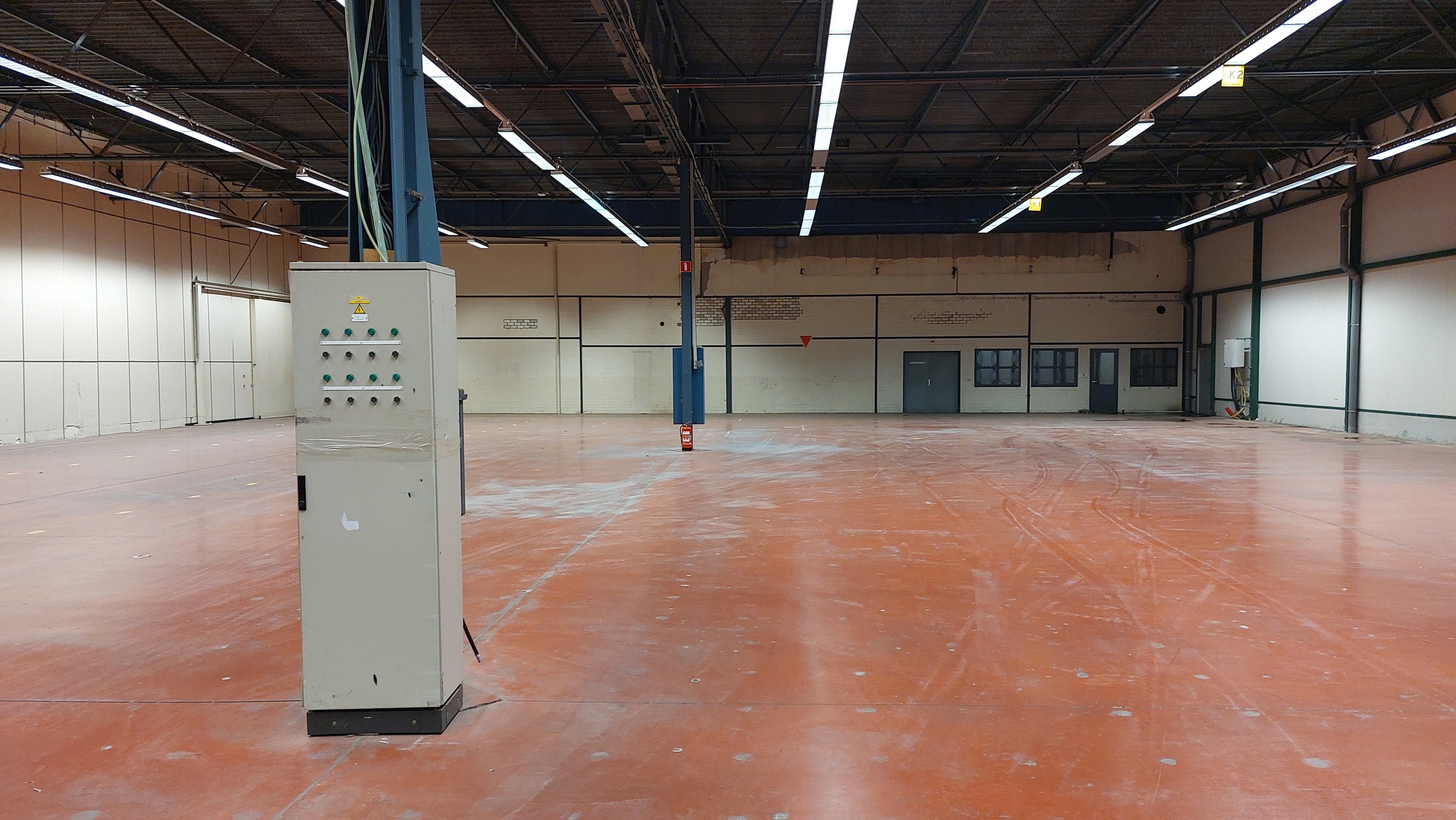 De hal meet 30 op 100 meter en beschikt over een grote poort en een laaddok. Nuttige hoogte ongeveer 6 meter.