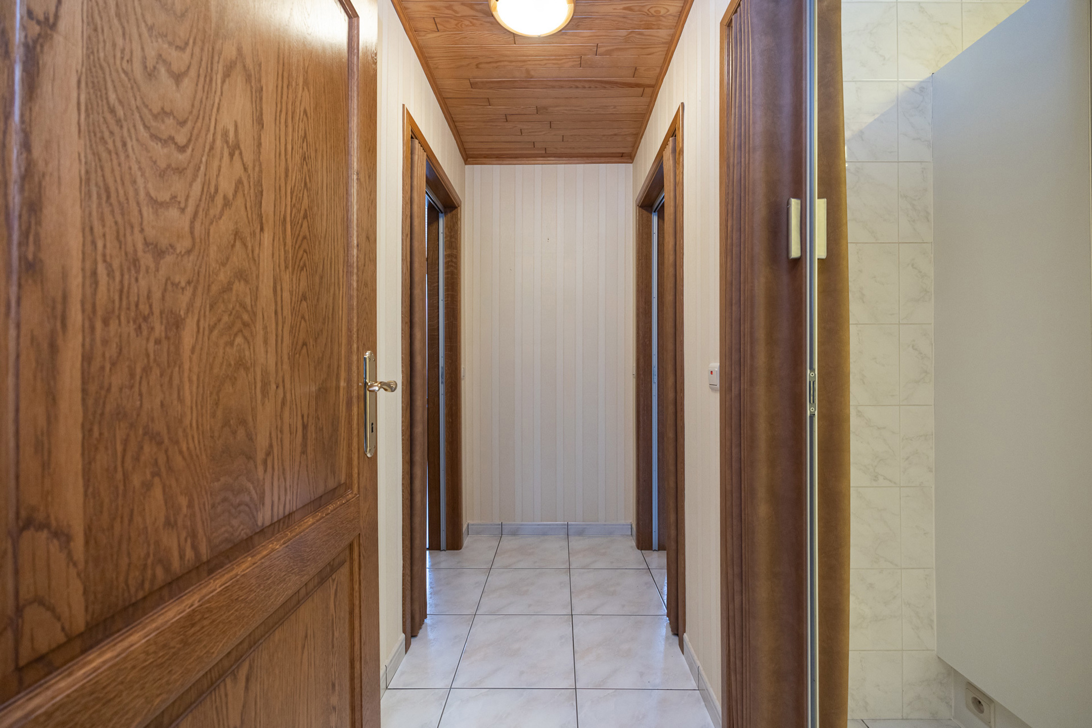 Achteraan het appartement bevinden zich de twee ruime slaapkamers, waarvan de rechtse toegang geeft tot de achterliggende buitenruimte. Van hieruit is er ook rechtstreekse toegang tot de garagebox welke voorzien is van een automatische poort.
