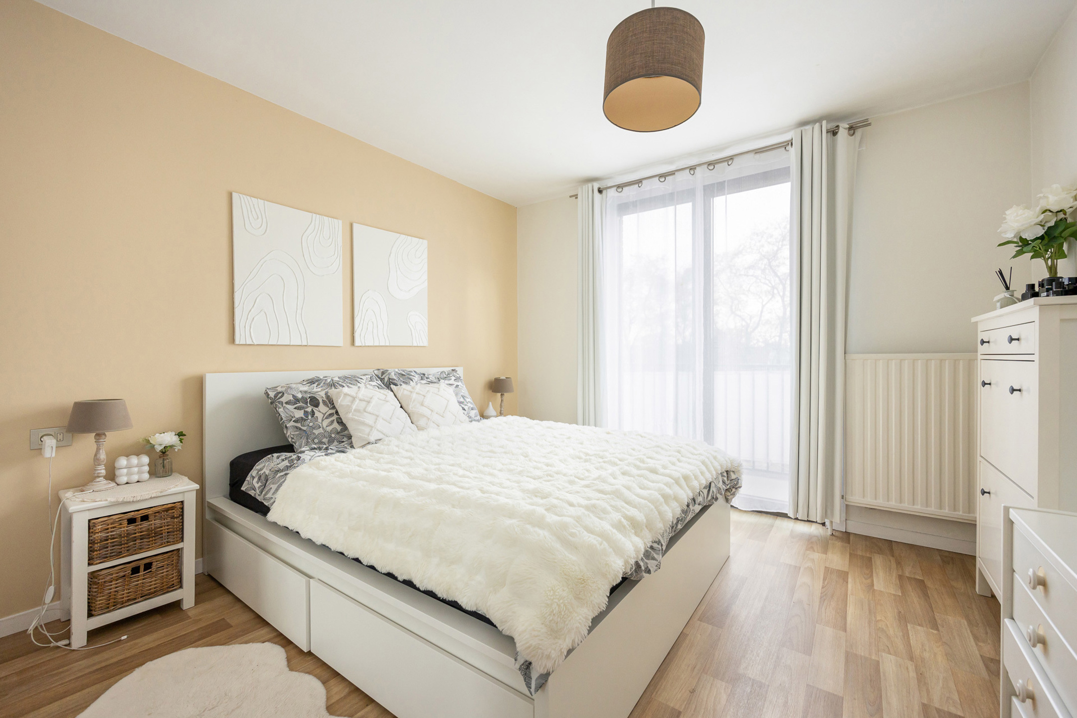 De nachthal geeft toegang tot het apart toilet, de twee slaapkamers en de badkamer. De badkamer omvat een lavabomeubel, een ruime inloopdouche en een aansluiting voor de wasmachine. De twee slaapkamers liggen aan de zonnige achterzijde van het gebouw, waarbij de grootste toegang biedt tot een tweede terras.