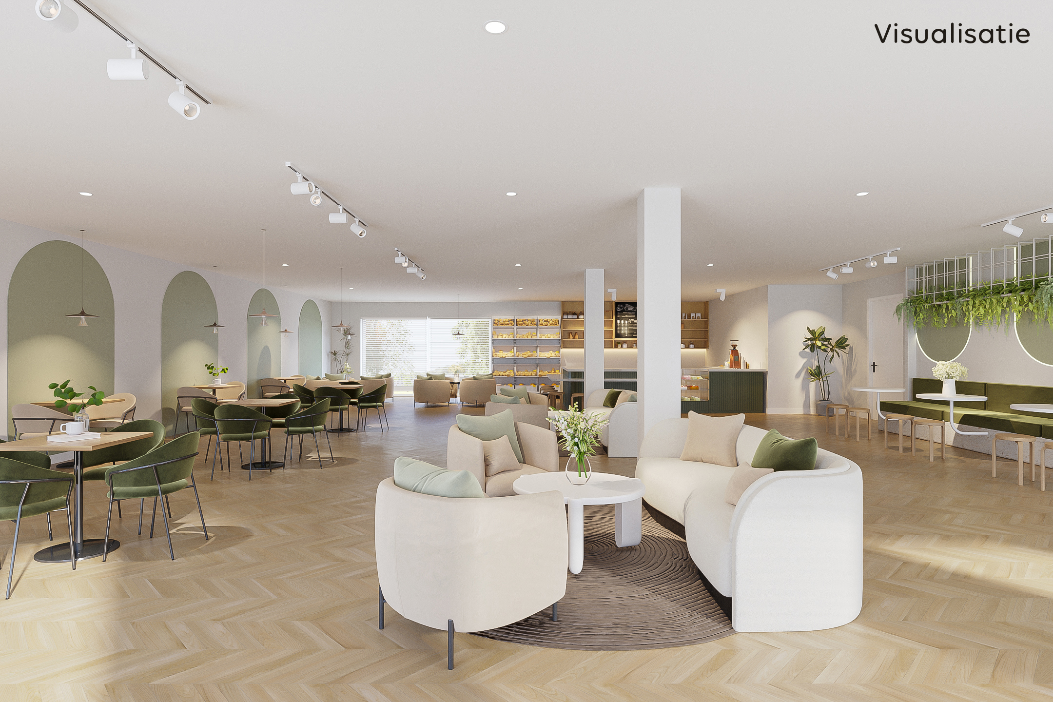 Handelsruimte HR1 bevindt zich op het gelijkvloers aan de kant van de Markt en heeft een oppervlakte van 182m². De handelsruimte wordt casco opgeleverd.