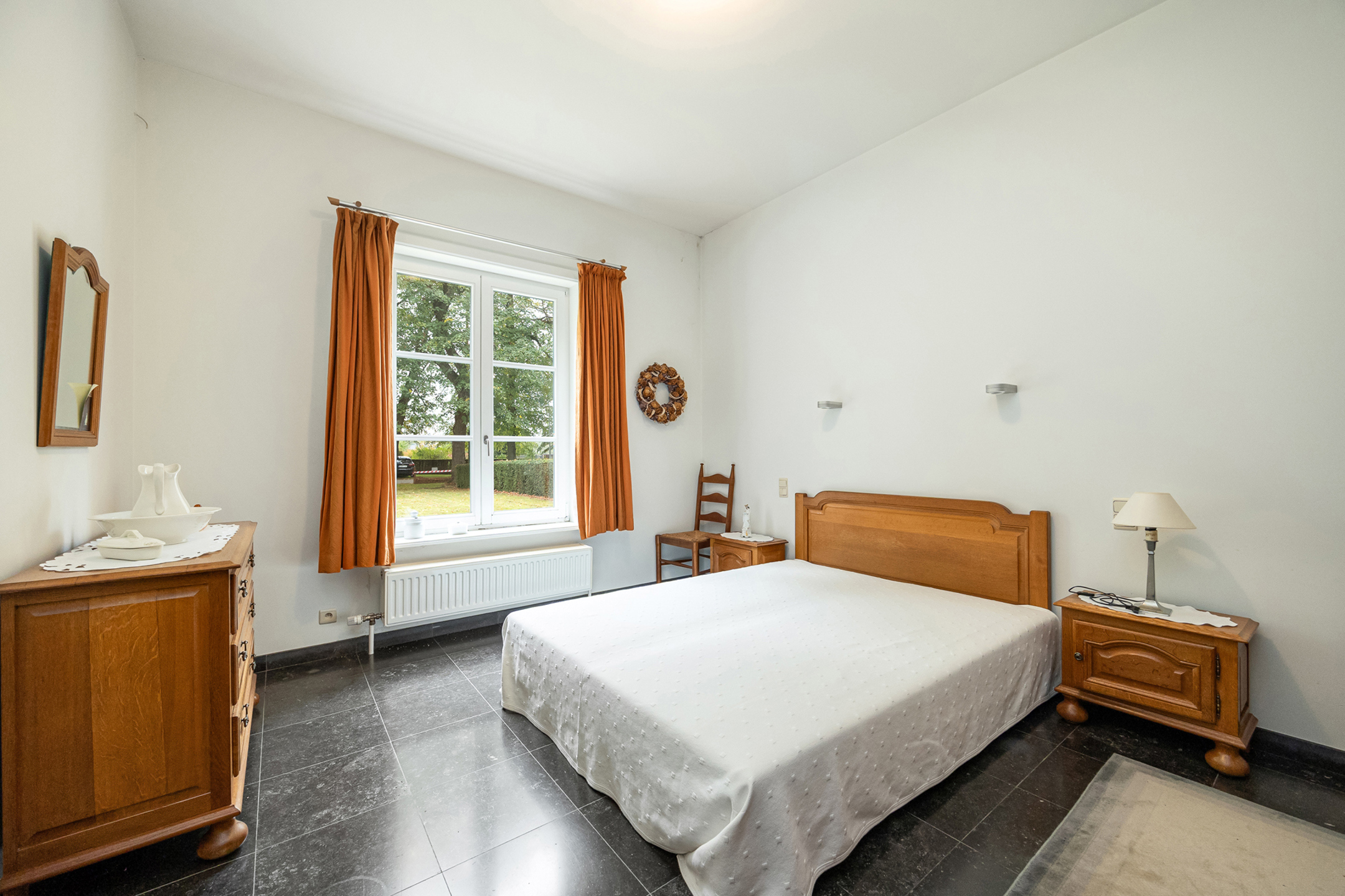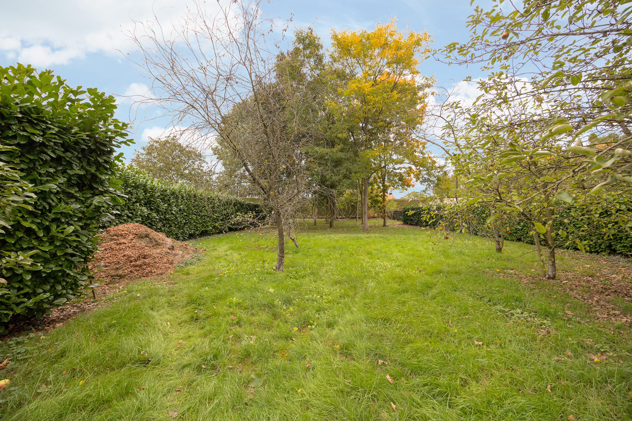 Buiten treft u een lange oprit in kasseien en een grote tuin deels aangelegd met fruitbomen. Het perceel is ook langs achter bereikbaar.