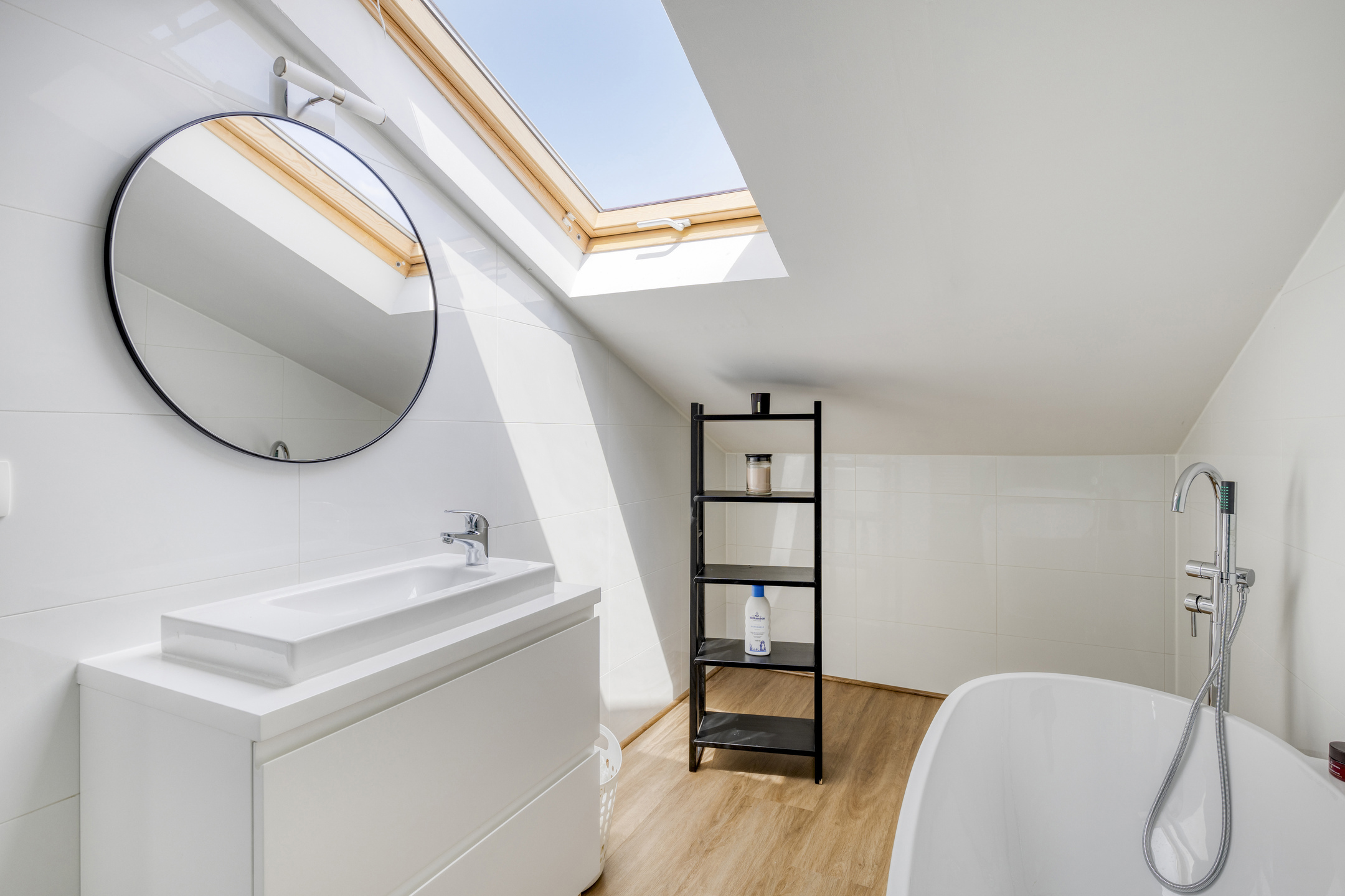 Ook de 1ste badkamer (7,71m²) met bad, douche en dubbel lavabomeubel is bereikbaar vanuit de nachthal. Een apart toilet is er ook aanwezig.