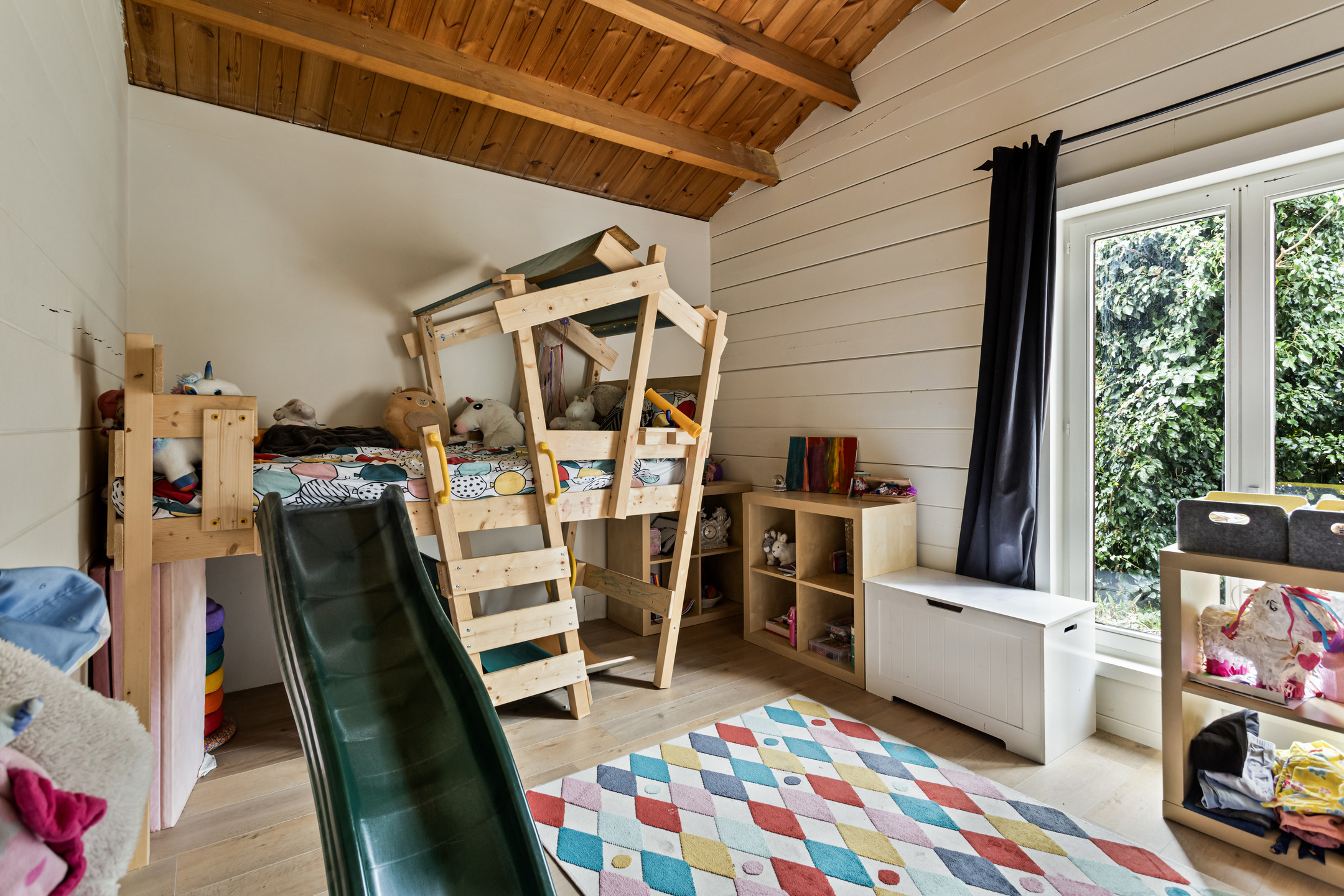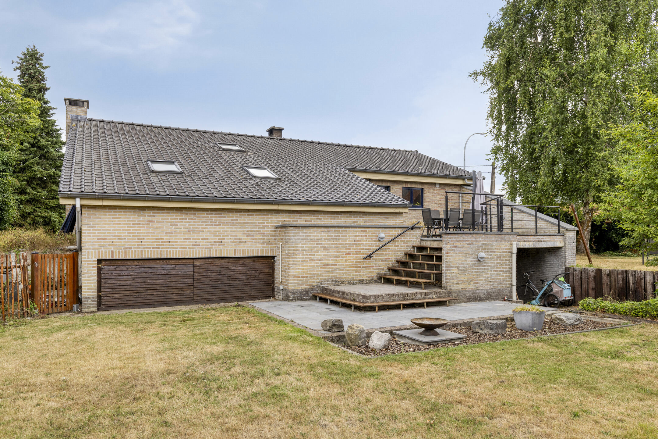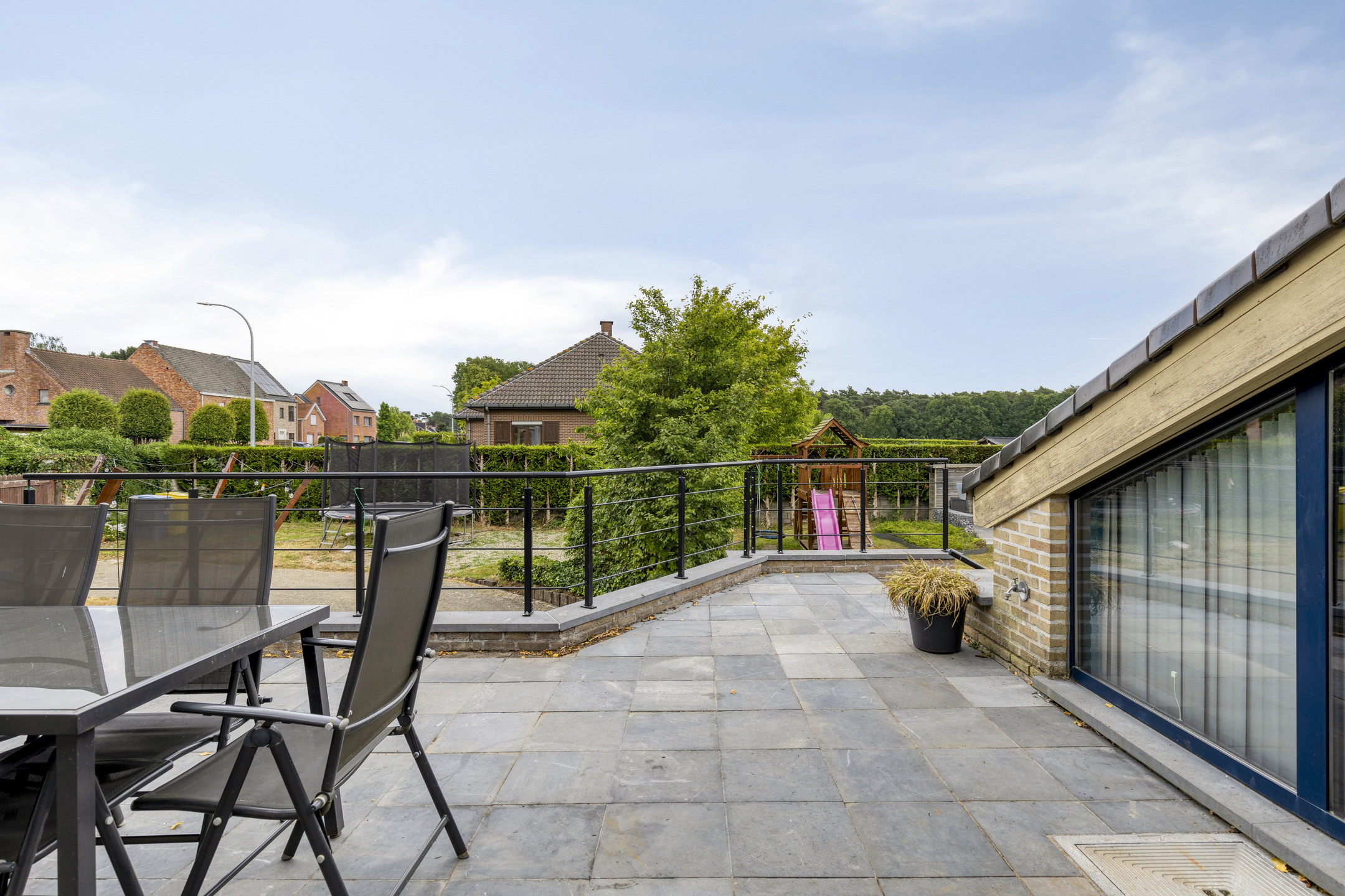 Buiten is er een ruim terras dat uitkijkt over de ideale tuin waar het aangenaam vertoeven is voor jong en oud.