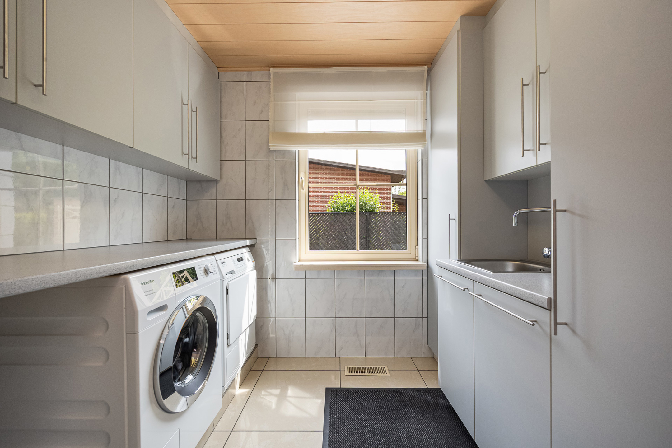 Loopt u verder, dan komt u in de berging, inpandige garage voor 1 wagen en verder de wasplaats met veel kastruimte.
