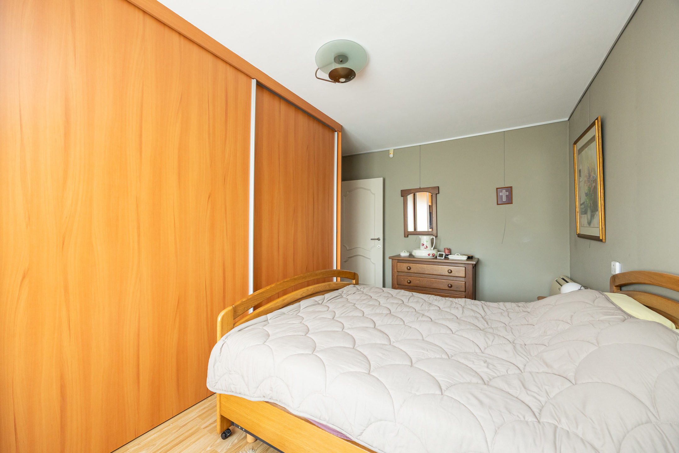 Verder geeft een trap met stoeltjeslift toegang tot de verdieping. Deze verdieping is ingericht tot 2 slaapkamers, een dressing, een apart toilet en een kleine badkamer met douche.