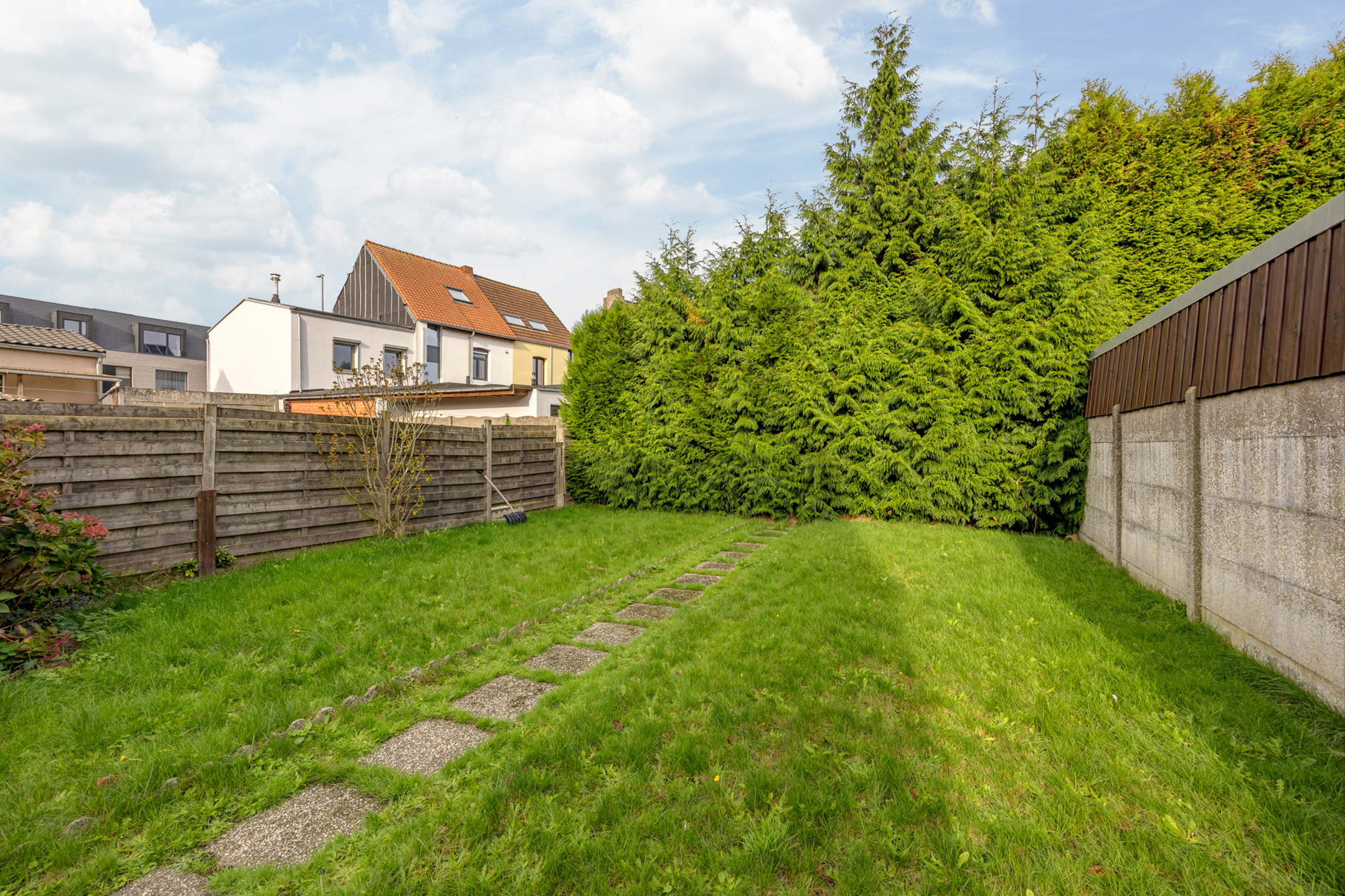 Buiten beschikt de woning over een overdekt terras en een aangename tuin. Vooraan is er nog een oprit voorzien.