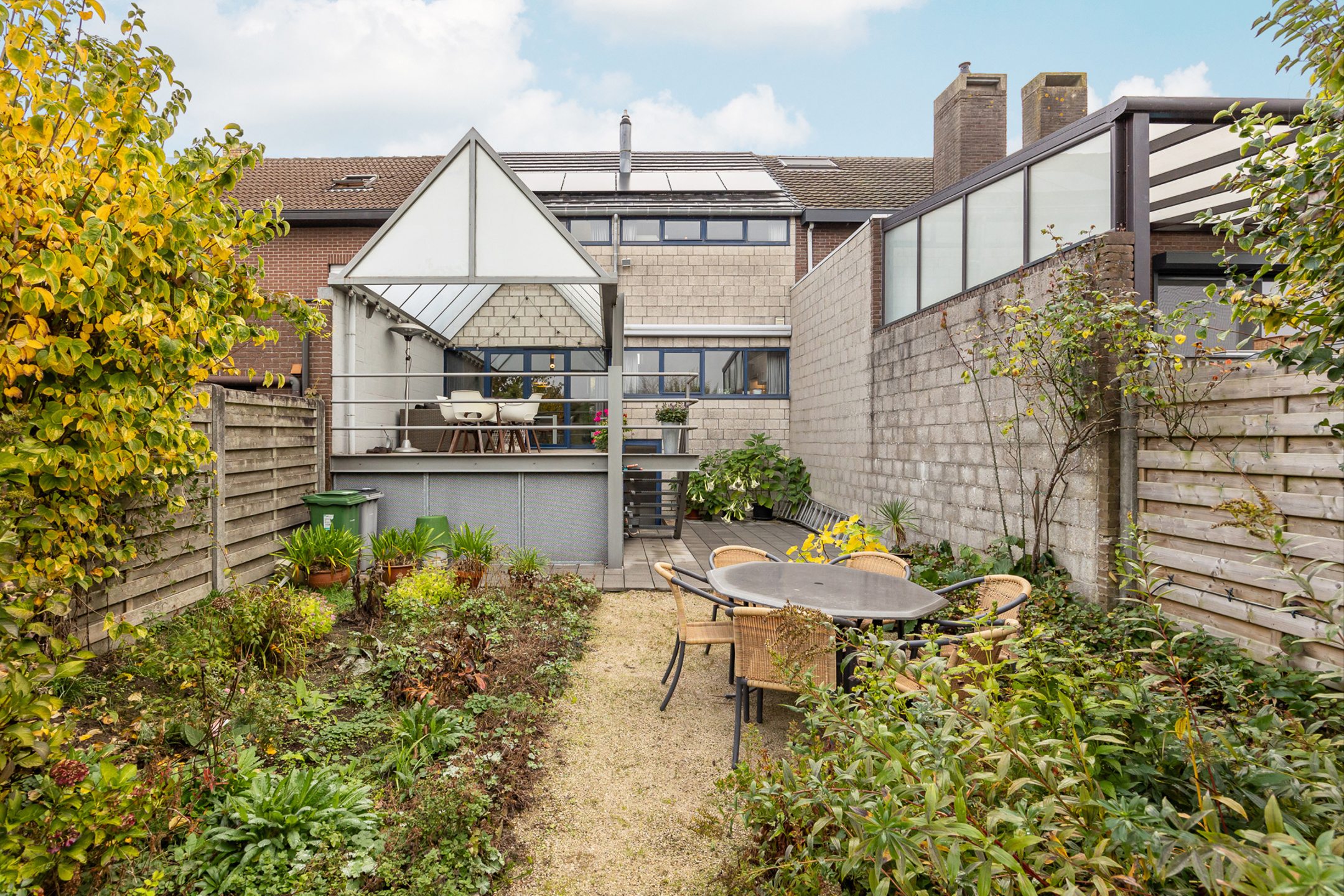 Buiten geniet u van een aangename, onderhoudsvriendelijke tuin, die in twee delen is opgedeeld, wat zorgt voor een speels en gevarieerd geheel.