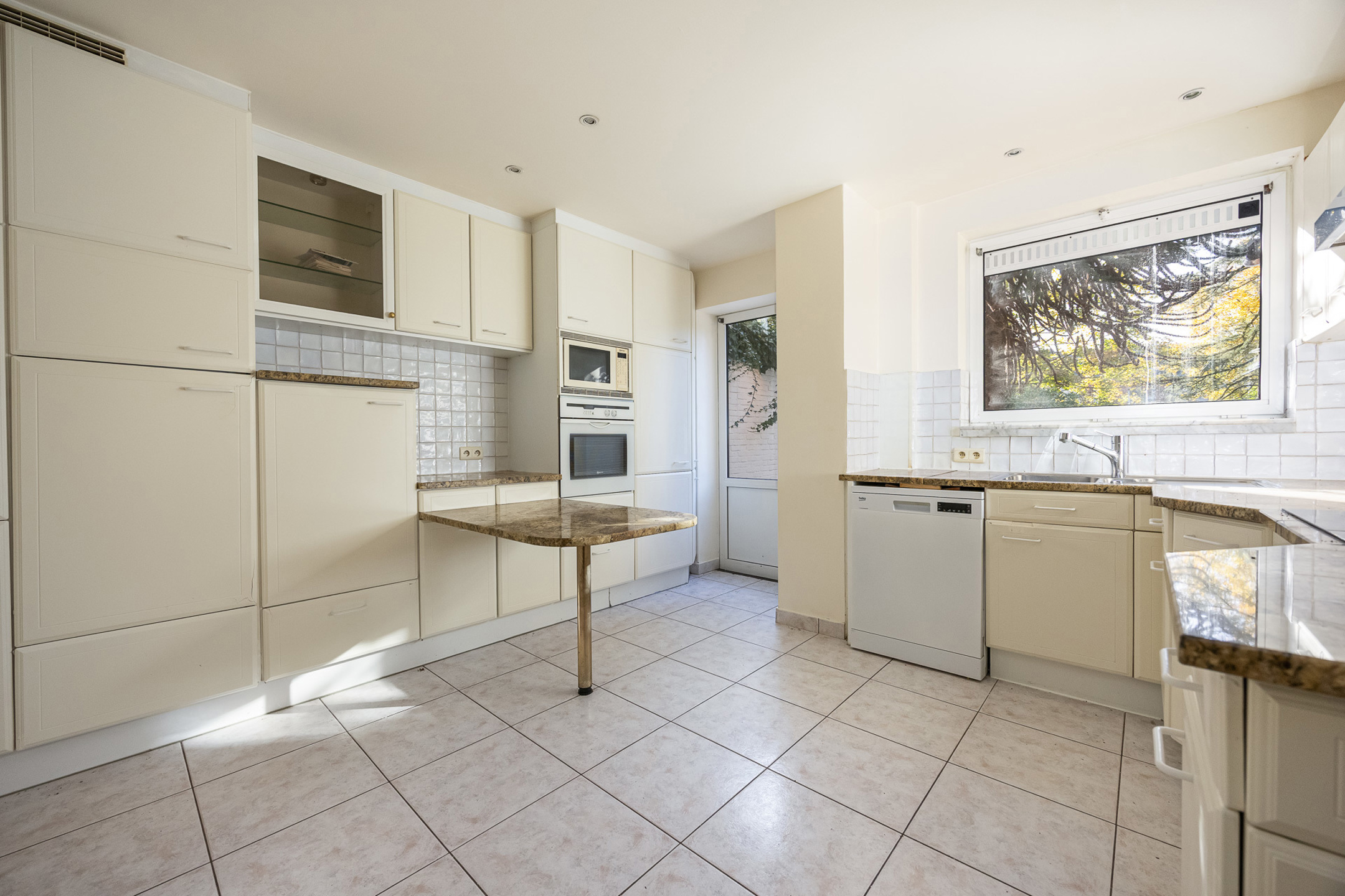Benedenverdieping: Inkomhal met vestiaire kast en gastentoilet. Woonkamer met parketvloer en dubbele deur naar de eetkamer met houtkachel. Keuken met gaskookplaat, dampkap, oven, microgolfoven, vaatwasser, koelkast. Kelder, berging met aansluiting voor wasmachine. Inpandige garage waar naast de wagen ook makkelijk enkele fietsen passen. Op de eerste verdieping zijn er vier slaapkamers, Twee grote slaapkamers waarvan één met ingemaakte kast. Eén slaapkamer met aansluitend een badkamer met douche, bad, toilet en badkamermeubel. Dressing. Toilet. Tweede badkamer met ligbad en badkamermeubel is bereikbaar via de overloop . Op de tweede verdieping is er een vijfde slaapkamer. Extra kamers zijn perfect mogelijk in de polyvalente ruimte (45 m²) en de zolder (20 m²) .