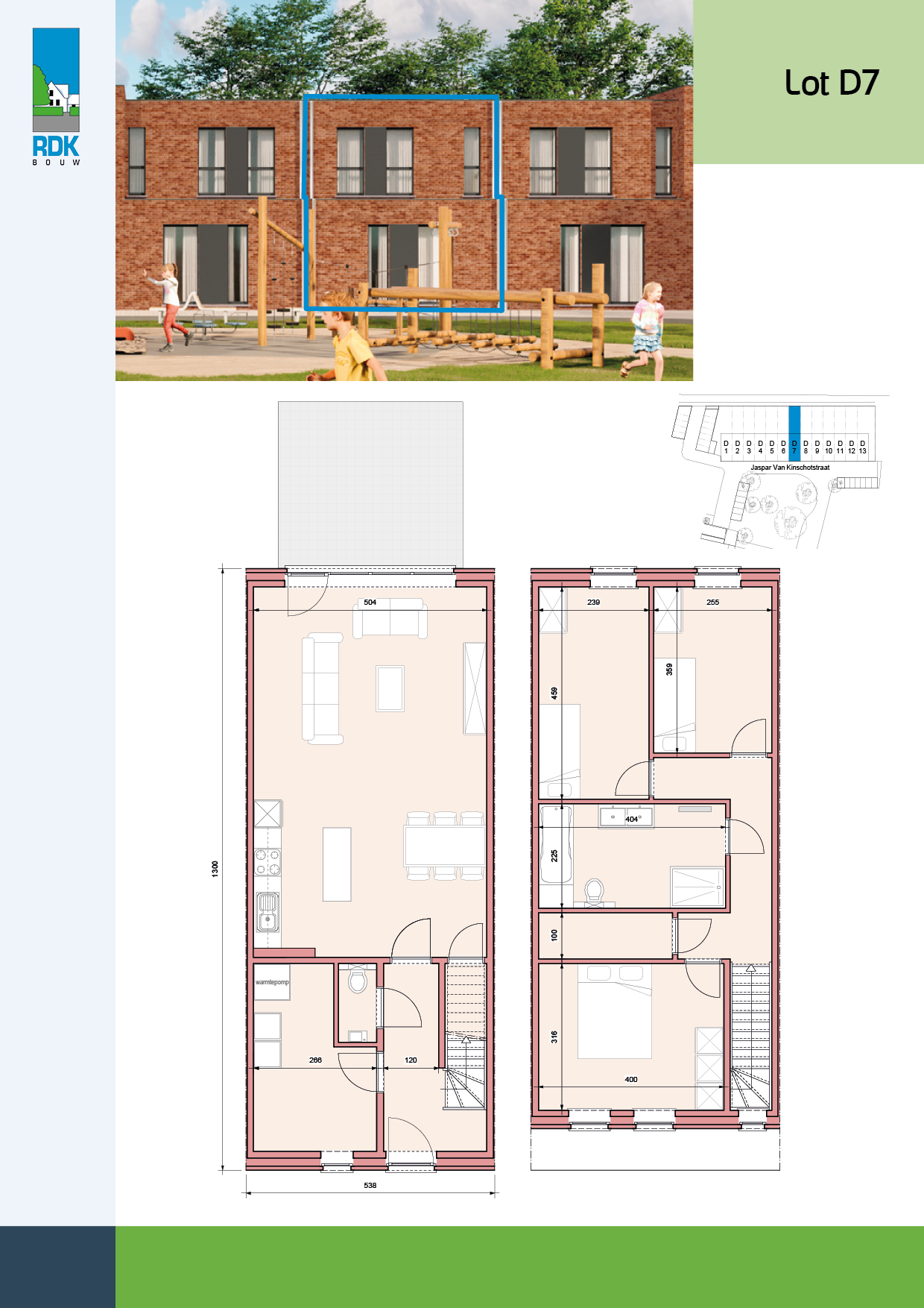 Woning 7 is een gesloten bebouwing met een bruto bewoonbare oppervlakte van 138 m². De woning beschikt over drie slaapkamers, woonkamer met open leefkeuken, berging, toilet, badkamer met ligbad, douche, dubbel lavabomeubel en toilet. Daarnaast is er een tuin met fietsenberging en privé-autostaanplaats onder carport.