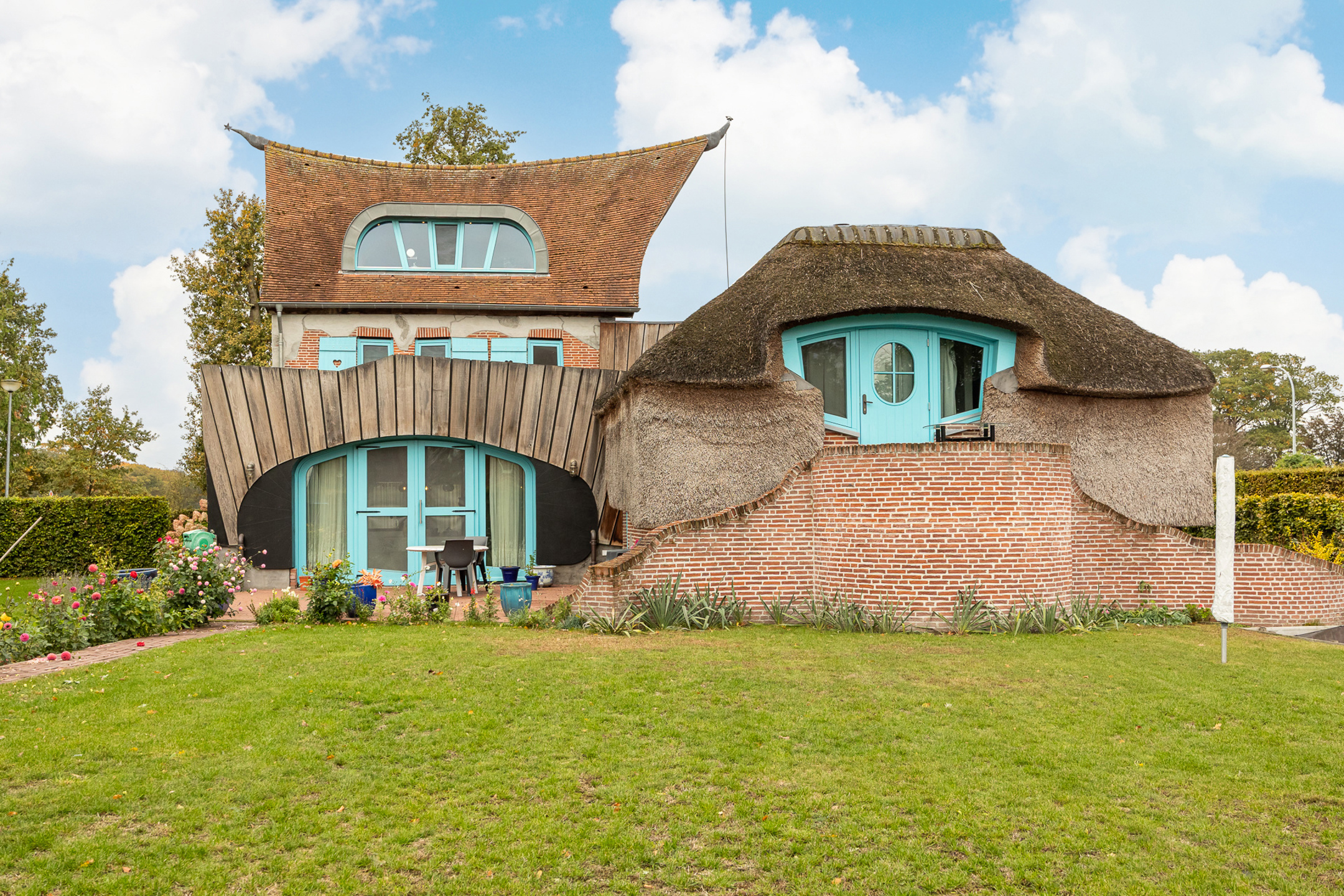 Omschrijving: Stap binnen in deze woning waar sierlijkheid en functionaliteit samenkomen! Bij de bouw lieten de eigenaars zich inspireren door de romantiek van de Efteling en deden ze beroep op de getalenteerde vormgever Anton van Alphen om tot dit unieke eindresultaat te komen. De samenwerking resulteerde in een bouwkundig meesterwerk met speelse vormen, warme materialen en bijzondere details zoals een gewelfd dak, cirkelvormige ramen en charmante luiken. De woning werd volledig gerenoveerd en uitgebreid met een nieuwe aanbouw, die momenteel ingericht is als kantoorruimte met aparte ingang (tijdelijk verhuurd tot april 2026).