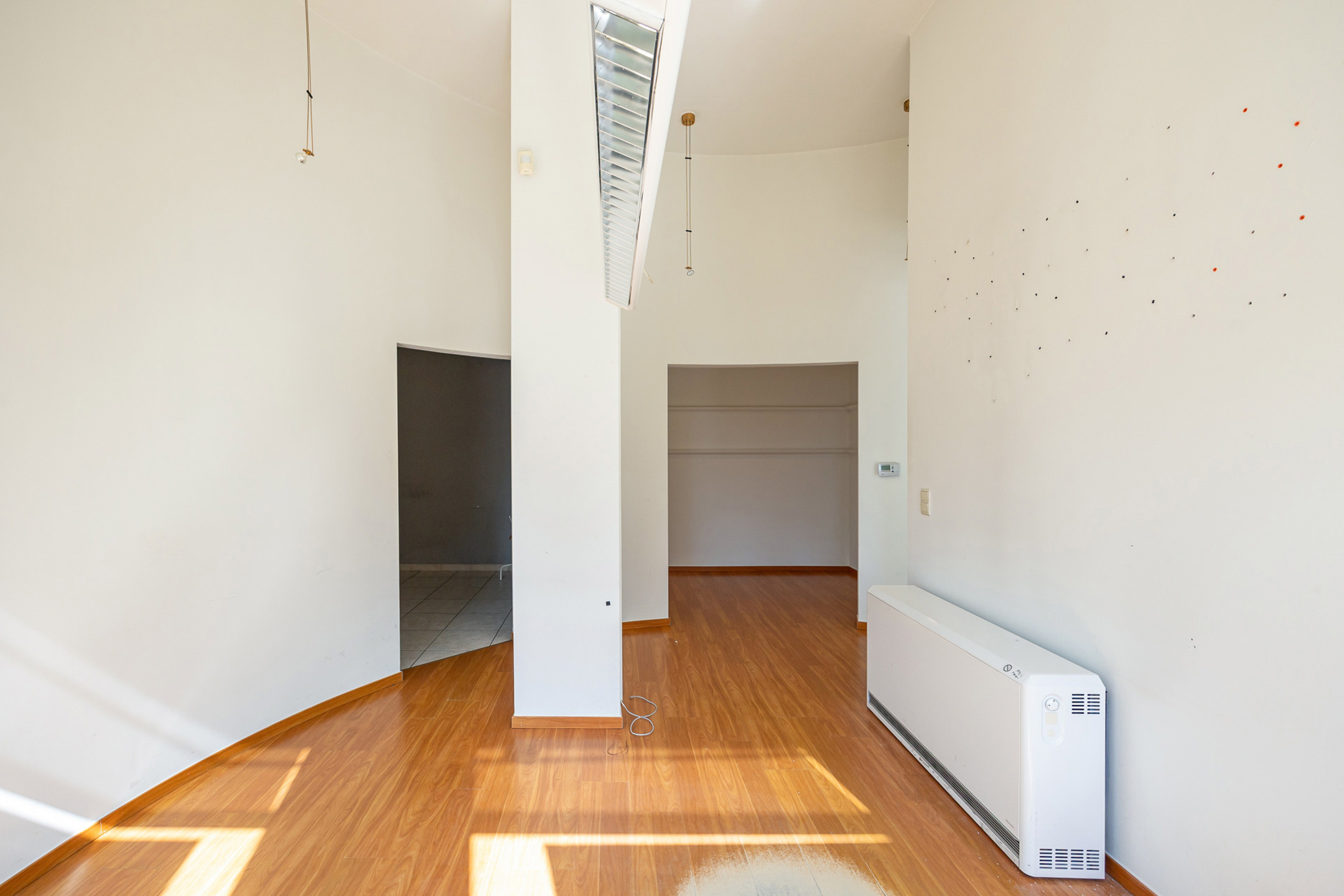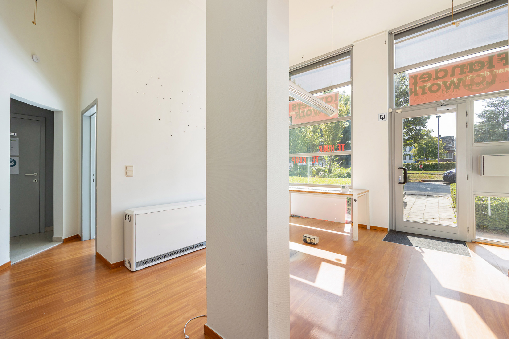 Door de hoge ramen valt er enorm veel licht binnen wat een heel aangenaam en ruim gevoel geeft en dit een aangename werkplek maakt.